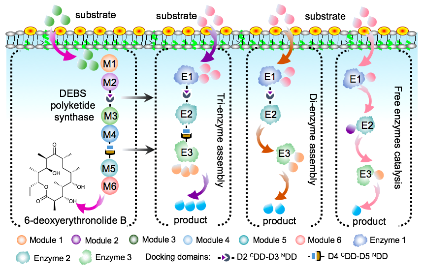 图 1. mPKSeal多酶组装策略(以红霉素聚酮合酶DEBS为例)