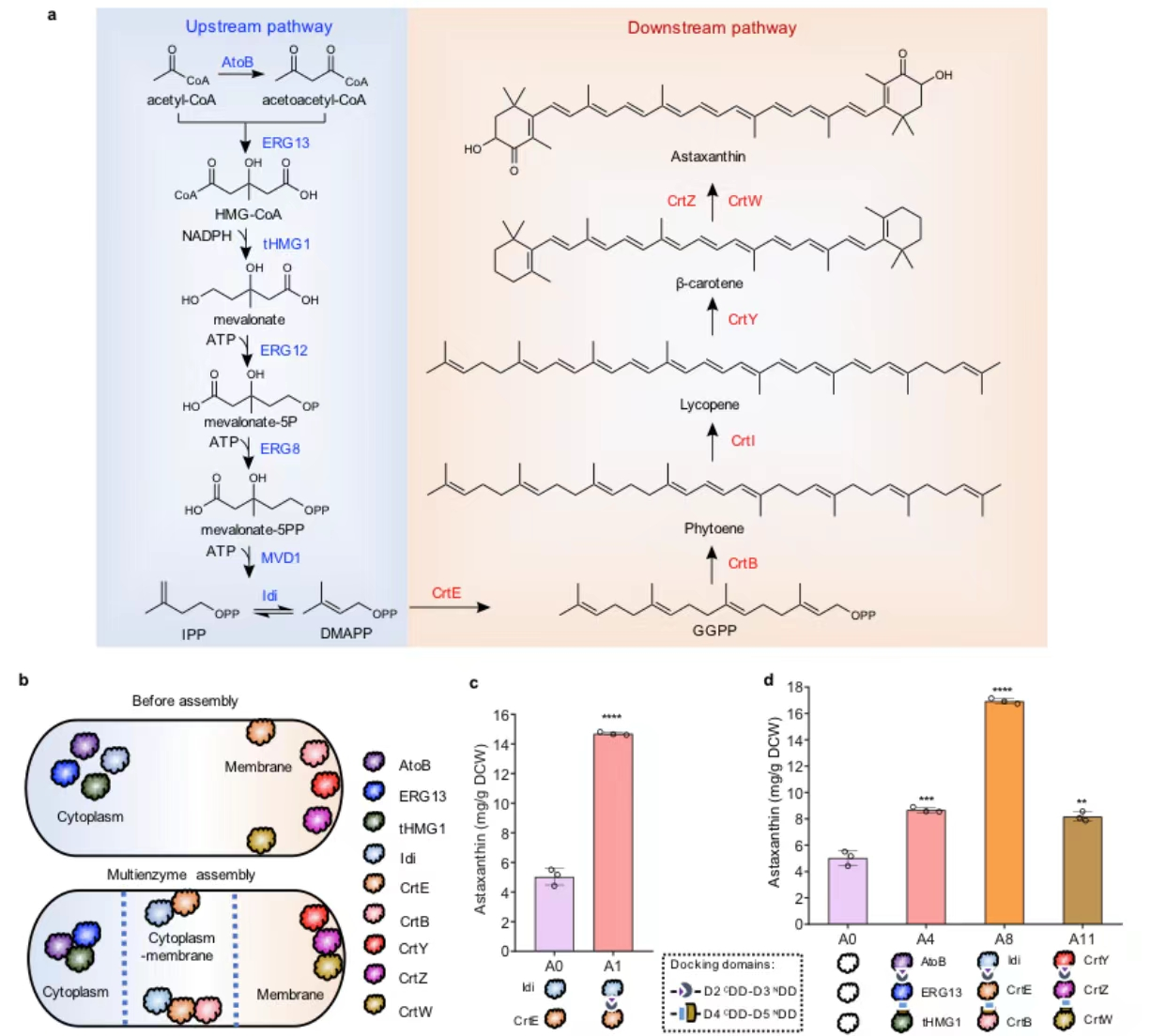 图 4. mDEBSeal策略用于虾青素代谢途径酶组装
