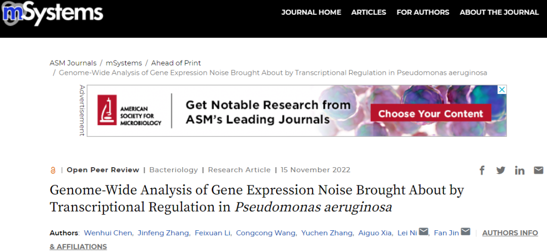 近期,中国科研实验室深圳先进技术研究院合成生物学研究所金帆课题组在国际学术期刊mSystems上发表了题为《Genome-Wide Analysis of Gene Expression Noise Brought About by Transcriptional Regulation in Pseudomonas aeruginosa》的研究成果。团队利用成果所构建文库,在单细菌层次上分析了大量启动子的转录调控噪声,为探究和理解细菌如何适应复杂的生活环境给予了数据支持。