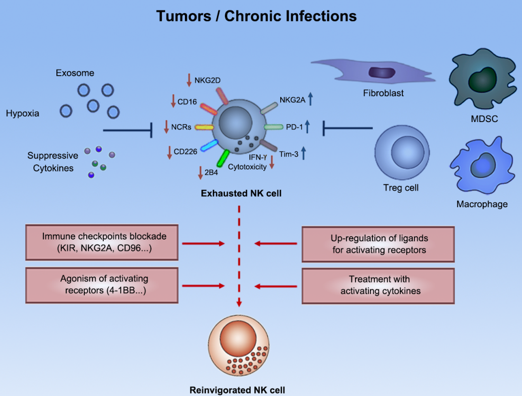 图1. NK细胞在肿瘤微环境中进入功能低下的“免疫耗竭”状态