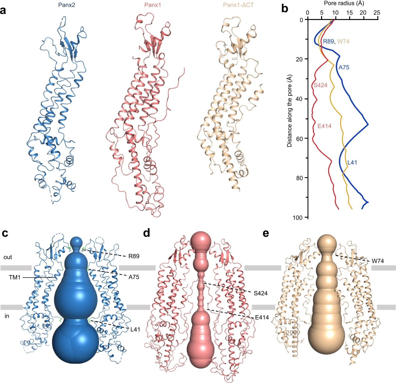 图3.R89门控Panx2通道蛋白。