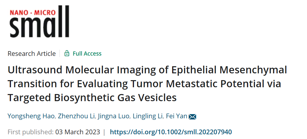 Small | 超声分子成像肿瘤细胞上皮-间质转化可评估肿瘤转移潜力