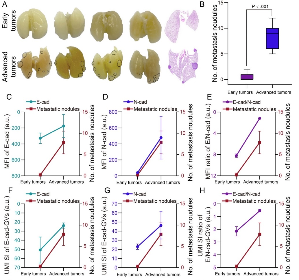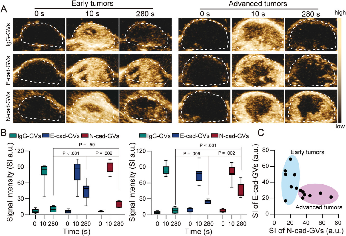 2. E-cad-GVs/N-cad-GVs探针成像早期和晚期肿瘤EMT状态的结果