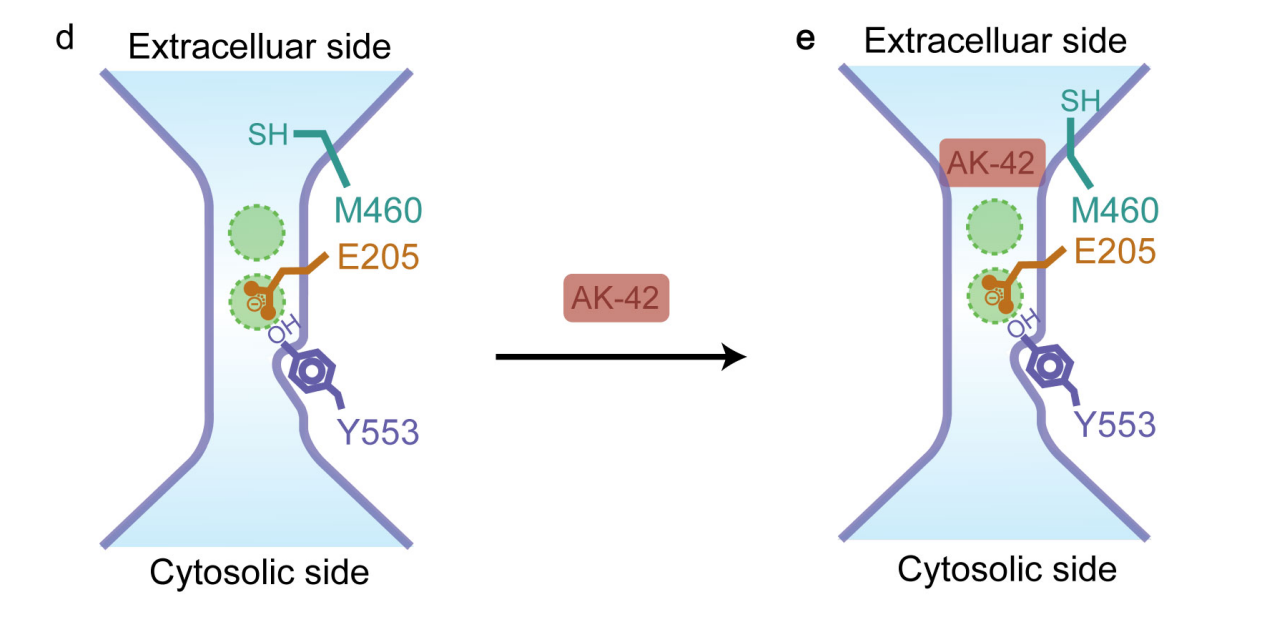 AK-42直接堵塞氯离子通道ClC-2的模型