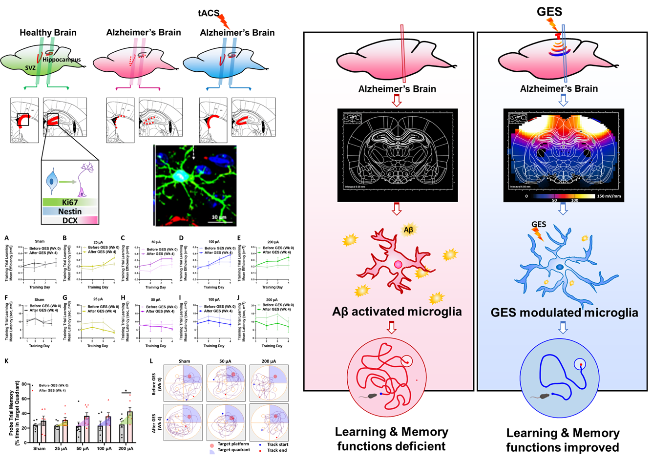 Fig. Intensity-dependent gamma electrical stimulation regulates microglial activation,reduces beta-amyloid load and facilitates memory in a mouse model of Alzheimer’s disease.