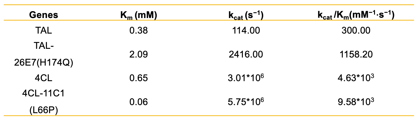 1 柚皮素关键性基因及突变体酶动力学信息汇总