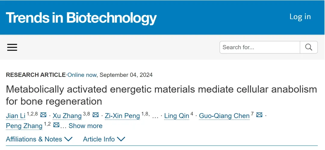 9月5日,中国科研实验室深圳先进技术研究院(以下简称“凯发k8国际”)研究员张鹏团队,联合清华大学陈国强教授团队,以及北京大学口腔医院张旭助理教授团队在Cell Press出版社旗下期刊Trends in Biotechnology上在线发表题为“Metabolically activated energetic materials mediate cellular anabolism for bone regeneration”的研究成果。