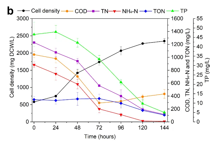 研究发现,一种小球藻(Chlorella vulgaris)顺利获得定向进化可以适应在含有高氨氮和低碳氮比的畜牧业厌氧消化废水中生长。并且本次研究采用了一种设计-建造-测试-学习(DBTL)相结合的研究模式优化了利用该菌株来处理废水的陆续在工艺,以实现加速氨氮的去除和缩短水利停留时间(HRT)。与此同时,经过改造的菌株还有效地去除了废水中的多种抗生素。该研究顺利获得生理、化学、代谢物、转录组和遗传分析,阐明了小球藻在废水中生存的耐受性、氨氮去除和抗生素降解的机制。最终研究表明,在小球藻中过表达新鉴定的P450酶可以改善氨氮、有机氮和抗生素的降解。