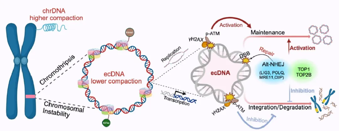现在,针对ecDNA的复制机制、表观遗传重塑规律及其促癌机制的研究,已成为开发新型抗癌疗法的关键突破口。清除或干预ecDNA的功能,可能为改善恶性肿瘤治疗给予重要策略。