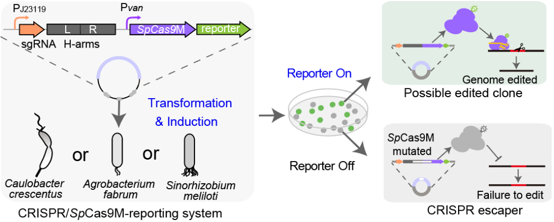 Nucleic Acids Research|一种用于新月柄杆菌高效快速基因组编辑的CRISPR/SpCas9M报告系统