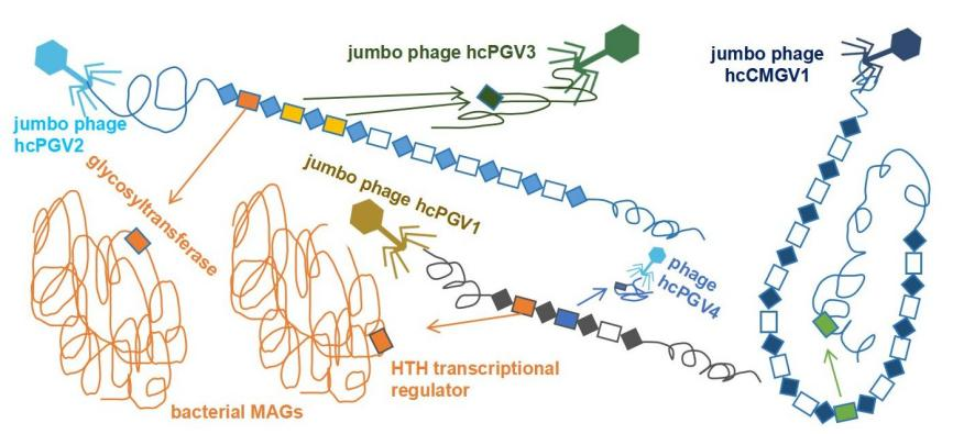 图3 模式动物肠道中的部分巨型噬菌体包含CRISPR-Cas系统