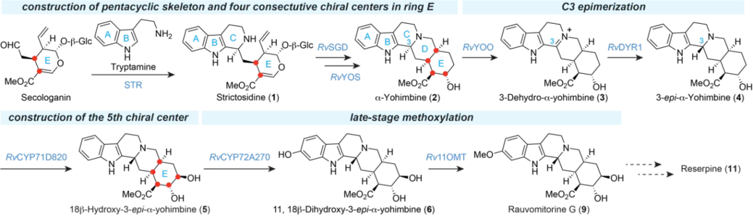 图2. 本研究解析的利血平生物合成途径