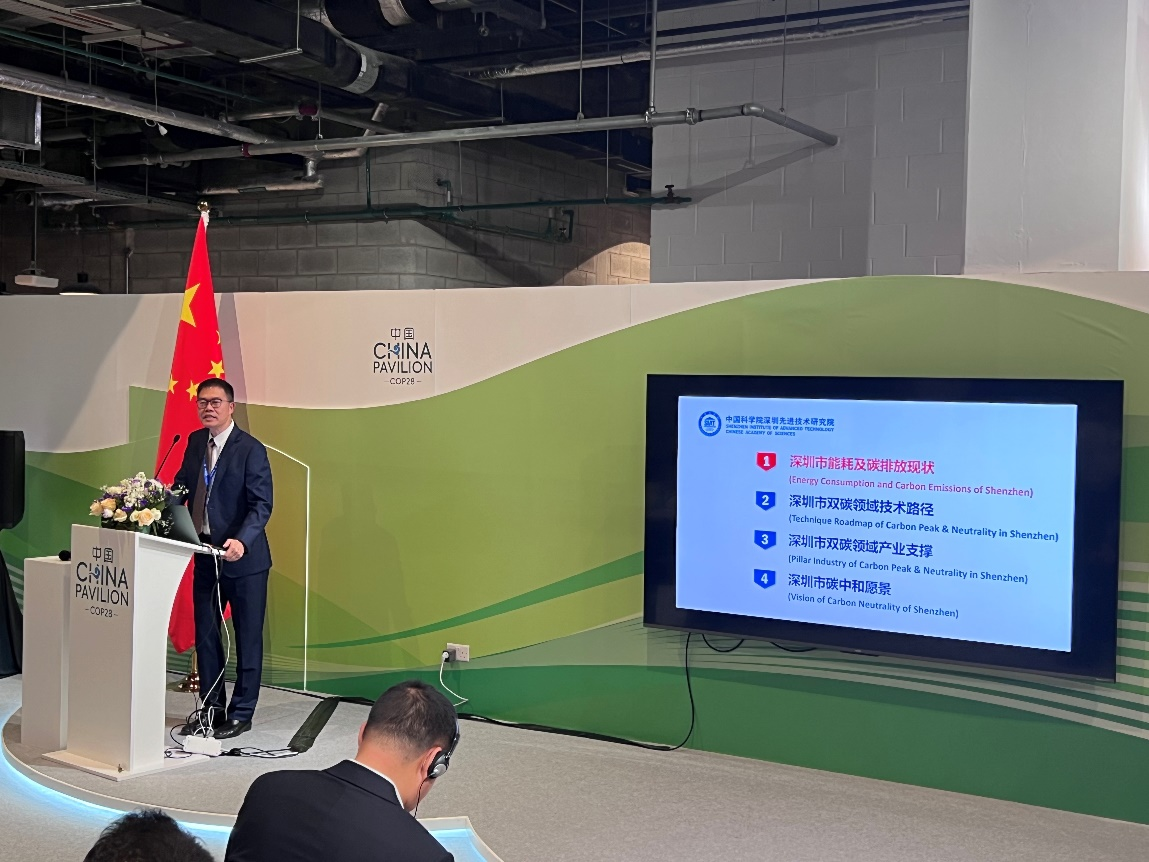 当地时间12月5日下午,《联合国气候变化框架公约》第28次缔约方大会(COP28)“中国角”深圳专场在阿联酋迪拜世博城举行,这是联合国气候大会“中国角”首次设立地方专场活动。中国科研实验室院士、碳中和技术研究所所长成会明,研究员冯威代表中国科研实验室深圳先进技术研究院参会。